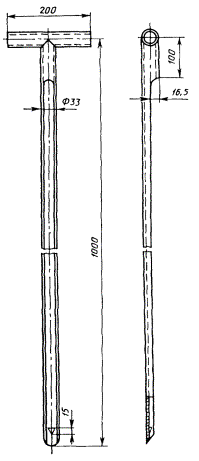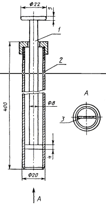* Значение округляют до целых чисел. 2.14.2. Отбор проб проводят в месте, защищенном от пыли и атмосферных осадков. Жидкий нефтепродукт перед отбором пробы из тары перемешивают. Содержимое бочки необходимо перемешать перекатыванием в течение 5 мин. Содержимое бидона, банки, бутыли перемешивают в течение 5 мин тщательным встряхиванием или с помощью специальной мешалки. Поверхность вокруг пробок, крышек и дна перед открыванием очищают. 2.14.3. Пробоотборную трубку для отбора точечной пробы жидкого нефтепродукта опускают до дна тары, затем верхнее отверстие закрывают пальцем и извлекают трубку из тары. Пробу сливают, открывая закрытый конец трубки. Объединенную пробу жидкого нефтепродукта составляют смешением точечных проб в соответствии с табл. 2. 2.14.4. Точечную пробу мазеобразного нефтепродукта отбирают щупом поршневым или винтообразным, с продольным вырезом или прямым без выреза. На месте погружения щупа удаляют верхний слой нефтепродукта толщиной 25 мм. Винтообразный щуп опускают, ввинчивая в нефтепродукт, до дна тары, затем извлекают и лопаточкой снимают с него пробу. Поршневой щуп опускают вдавливанием в нефтепродукт до дна тары и, поворачивая на 180 °, прорезают нефтепродукт проволокой, припаянной к нижнему концу щупа, затем щуп извлекают и поршнем выдавливают из него пробу. Щуп с продольным вырезом опускают, ввинчивая в нефтепродукт, до дна тары, а затем извлекают и освобождают из него пробу шпателем, вставленным в верхнюю часть прорези, перемещая его вниз. Прямой щуп без выреза погружают до дна тары с расплавленным битумом, затем извлекают и ножом соскабливают с него пробу. Слой нефтепродукта толщиной 5 мм в верхней части щупа не включают в пробу. Объединенную пробу мазеобразного нефтепродукта составляют смешением точечных проб без их расплавления. Точечную пробу из ящика или мешка, заполненного плитками или кусками, берут в виде одной плитки или одного куска. Объединенную пробу для плавкого нефтепродукта, упакованного в мешки или бочки, составляют, откалывая от каждого отобранного куска или плитки по одному куску примерно равного размера и перемешивая их, не расплавляя. 2.14.6. Точечную пробу нефтепродукта, находящегося в расплавленном состоянии в бочках, отбирают и составляют объединенную пробу по п. 2.14.3 или 2.14.5. 2.14.7. Точечную пробу порошкообразного нефтепродукта из мешка, пакета или контейнера отбирают щупом (черт. 13), погружая его на всю толщину нефтепродукта. Объединенную пробу составляют смешением точечных проб. 2.15. Отбор проб неупакованных нефтепродуктов 2.15.1. Точечные пробы формованного в виде отливок (болванок) твердого плавкого нефтепродукта отбирают из каждой сотни отливок в виде куска отливки, но не менее 10 кусков от партии. 2.15.2. Точечные пробы неформованного твердого плавкого нефтепродукта отбирают от каждой тонны лопатой в виде куска, но не менее 10 кусков от партии. 2.15.3. Объединенную пробу формованного или неформованного твердого плавкого нефтепродукта составляют, откалывая от каждого отобранного куска по три кусочка примерно равных масс и перемешивая их, не расплавляя. 2.15.4. Точечную пробу твердого неплавкого нефтепродукта отбирают массой 1-2 кг лопатой или совком при формировании штабеля из разных мест ковша, скребка, контейнера и т.д. Куски размером более 250 мм в пробу не включают. Объединенную пробу соста