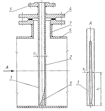 Примечания: 1. Допускаемое отклонение ширины отверстия 11 - 15 от расчетной - не более 0,1 мм, высоты: 0,2 мм - при 40 < Dу < 100; 0,4 мм - при 100 < Dу < 350; 0,8 мм - при 350 < Dу < 600; 1,5 мм - при 600 < Dу < 1400. 2. Допускается зазор между нижней точкой пробоотбора и нижней образующей трубопровода не более 5 мм. 3. Участки сопряжения верхних и нижних границ щелевых отверстий с боковыми границами допускается выполнять по линии, с радиусом кривизны 0,2 - 1,0 ширины участков сопряжения указанных границ. (Введено дополнительно, Изм. № 1). ПРИЛОЖЕНИЕ 3Обязательное Параметры диспергатора (черт. 19)Размеры в миллиметрах
