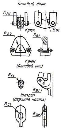 Дата введения 01.07.83 1. Настоящий стандарт распространяется на кронблоки, талевые блоки, крюки, крюкоблоки, штропы, элеваторы и вертлюги, применяемые в буровых установках для эксплуатационного и глубокого разведочного бурения на нефть и газ. Стандарт не распространяется на специальное оборудование, применяемое при работе с комплексом механизмов автоматизации спуско-подъемных операций и других специальных видах бурения. Степень соответствия настоящего стандарта СТ СЭВ 2452 приведена в приложении. 2. Присоединительные размеры сопрягаемых элементов талевых блоков, крюкоблоков, штропов, элеваторов и вертлюгов должны соответствовать указанным на черт. 1, 2 и в табл. 1. Черт. 1 Черт. 2 Таблица 1 Размеры в мм