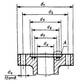 3. Соединение отвода вертлюга с буровым шлангом должно быть фланцевым типов I и II. Присоединительные размеры должны соответствовать указанным на черт. 3 и в табл. 2. Тип 1