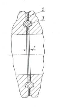Изменение № 1 ГОСТ 25660-83 Фланцы изолирующие для подводных трубопроводов на РУ 10,0 МПа (около 100 кгс/см.кв.). Конструкция Утверждено и введено в действие Постановлением Государственного комитета СССР по управлению качеством продукции и стандартам от 12.04.90 № 867 Дата введения 01.01.91 Наименование стандарта. Исключить слова: «и размеры»; «and dimensions». Пункт 1. Второй абзац исключить. Пункт 2. Чертеж 1. Изображение позиций 2, 3 заменить новым: