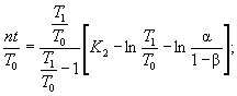 2. ФОРМУЛЫ ДЛЯ ОПРЕДЕЛЕНИЯ ПАРАМЕТРОВ ПРОГРАММ ИСПЫТАНИЙ ОДНОСТУПЕНЧАТЫМ МЕТОДОМ2.1. В тех случаях, когда показателем безотказности является наработка на отказ, уравнения для определения параметров программ испытаний с ограниченным числом отказов имеют вид где Оценочный норматив следует рассчитывать по формуле