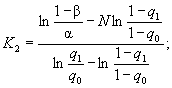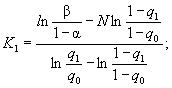 где q0, q1 - вероятности отказов, определяемые по заданному значению Р0(q = 1-P0) и отношению N = nm - число