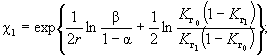 Величины χ1 и χ2 следует рассчитывать по формулам: