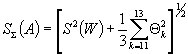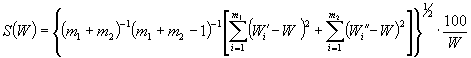 где W1i, W2i - результаты i-гo наблюдения мощности источника при помещении его в первый и второй поглотитель соответственно, Вт. W1i, W2i - вычисляют по формулам W1i=1/j1 (G1i - b); (45) W2i=1/j2 (G2i - b), (46) где G1i, G2i - показания прибора в цепи термобатареи при i-m наблюдении при помещении источника в первый и второй поглотитель соответственно, В. Относительное СКО результата измерения тепловой мощности источника S (W) оценивают по формуле (38). Активность альфа-излучающих нуклидов в источнике вычисляют по формулам (39) и (40). (Измененная редакция, Изм. № 1). 3.9.2. Доверительные границы суммарной погрешности результата измерения активности альфа-излучающих нуклидов в источнике для доверительной вероятности 0,95 вычисляют по формуле (15), где принимают