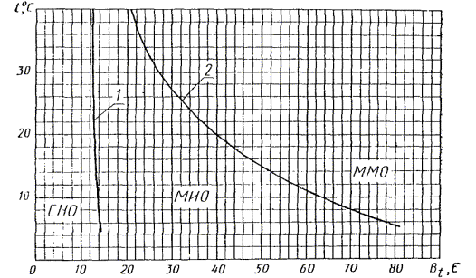 Постановлением Государственного комитета СССР по стандартам от 20 декабря 1984 г. № 4756 срок действия установлен с 01.01.87 до 01.01.92 Несоблюдение стандарта преследуется по закону Настоящий стандарт устанавливает метод определения условной вязкости отработанных нефтепродуктов и отнесения их к группам по ГОСТ 21046-86 в зависимости от вязкости. (Измененная редакция, Изм. № 1). Сущность метода заключается в измерении времени истечения определенного количества отработанного нефтепродукта через калиброванное отверстие вискозиметра. (Измененная редакция, Изм. № 2). 1. АППАРАТУРА, РЕАКТИВЫ И МАТЕРИАЛЫВискозиметры ВЗ-4 или ВЗ-246 с диаметром сопла 4 мм по ГОСТ 9070-75 Термометр ТИН-2 по ГОСТ 400-80 или ТН-3 по ТУ 92-887019-90. Секундомер. Сито из проволочной тканой сетки 01 по ГОСТ 6613-86. Стакан Н-2-100 (или 150) по ГОСТ 25336-82. Груша резиновая. Бензин любой марки неэтилированный по ГОСТ 2084-77. 2. ПОДГОТОВКА К ИСПЫТАНИЮ2.1. Резервуар и сопло вискозиметра промывают бензином, протирают насухо ветошью, не оставляющей ворсинок, и продувают воздухом. 2.2. 150 см3 испытуемого нефтепродукта обезвоживают по ГОСТ 26378.0-84 и верхний слой фильтруют через металлическое сито. 2.3. При помощи винтов устанавливают вискозиметр в горизонтальное положение. 2.4. Подставляют под сопло вискозиметра стакан. 3. ПРОВЕДЕНИЕ ИСПЫТАНИЯ3.1. Измеряют фактическую температуру нефтепродукта t с погрешностью не более 1 °С (предварительное термостатирование не требуется). (Новая редакция, Изм. № 2). 3.2. Придерживают рукой вискозиметр так, чтобы один из пальцев закрыл нижнее отверстие сопла вискозиметра. 3.3. Заполняют отфильтрованным нефтепродуктом резервуар вискозиметра до уровня верхнего края (до начала переливания в кольцевой желобок). В другую руку берут секундомер. 3.4. Быстрым движением убирают палец, прикрывающий сопло вискозиметра, одновременно с появлением жидкости из сопла включают секундомер. 3.5. Секундомер останавливают в момент первого появления прерывающейся струи нефтепродукта. Записывают время истечения нефтепродукта с погрешностью не более 0,2 с. Время истечения определяют два раза. 4. ОБРАБОТКА РЕЗУЛЬТАТОВ4.1. За результат испытания на вискозиметре ВЗ-246 при температуре t принимают условную вязкость (Bt) в секундах, вычисленную по формуле (1), на вискозиметре ВЗ-4 - по формуле (2): где τ1 и τ2 - время истечения при температуре испытания, с; K - поправочный коэффициент, указанный в паспорте и на корпусе вискозиметра. (Новая редакция, Изм. № 2). 4.2. По условной вязкости устанавливают группу отработанного нефтепродукта. Для этого на графике (обязательное приложение) находят точку пересечения величины условной вязкости и температуры испытуемого нефтепродукта. Если найденная точка находится на графике правее кривой 2, то отработанный нефтепродукт по вязкости относится к группе ММО, левее кривой 1 - к группе СНО, между двумя кривыми - к группе МИО. 4.3. Если кроме установления группы отработанного нефтепродукта требуется определить условную вязкость при 20 °С, испытуемую пробу термостатируют при температуре (20±0,5) °С и затем проводят испытание по пп. 3.1-3.5». (Введен дополнительно, Изм. № 2). 5. ТОЧНОСТЬ МЕТОДА5.1. Сходимость. Два результата определений, полученные одним исполнителем в одной лаборатории, признаются достоверными (с 95 %-ной доверительной вероятностью), если расхождение между ними не превышает 0,20 с. (Новая редакция,