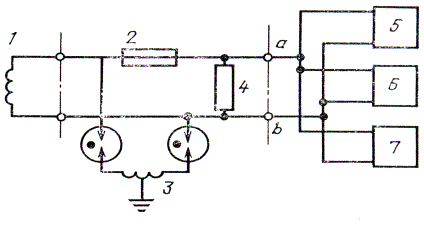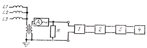 - согласующий трансформатор; 3 - устройство для измерения величины тока в жилах