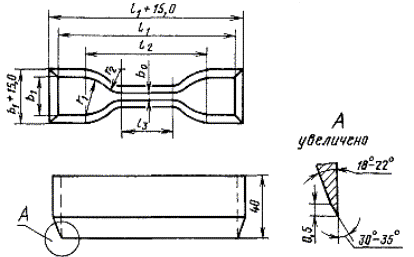 Форма и угол заточки режущей кромки ножа для вырубки образцов лопаток ОПРЕДЕЛЕНИЕ ОТНОСИТЕЛЬНОЙ ОСТАТОЧНОЙ ДЕФОРМАЦИИ ПОСЛЕ РАЗРЫВА |