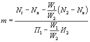 проводят не менее пяти раз для различных условий и вычисляют Метод определения чувствительности аппаратуры третьего вида Для аппаратуры третьего вида делают допущение, что полный поток ионизирующего излучения в контролируемом диапазоне (М) представляет собой сумму двух потоков: потока (Мэф), несущего информацию о состоянии активной зоны, и фонового потока (Мф), пропорционального мощности реактора и обусловленного излучением продуктов активации и фоном в помещении, в котором расположено УД. Значение Мэфi при определенной мощности реактора Wi пропорциональна какому-то параметру πi характеризующему состояние твэлов активной зоны и определяемому при помощи спектрометрического анализа проб из контролируемых коммуникаций. В зависимости от принятого метода контроля состояния активной зоны такими параметрами могут быть: коэффициент скорости утечки продуктов деления из-под оболочки; площадь поверхности топлива, из которой происходит выход определенных радионуклидов в теплоноситель; активность определенного нуклида (нуклидов) и т.п. В случае пропорциональности выбранного параметра определения самого значения Мф не требуется и связь между регистрируемой скоростью счета (Ni), значением параметра (πi) и чувствительностью (т) рассчитывают по формуле 9, аналогичной формуле 7 Ni = mПi + KiMф + Nн. (9) Значение чувствительности соответственно определяют так же, как для второго вида аппаратуры, только в случае изменения (Ni) и (πi), не пропорциональных изменению мощности. Для двух измерений при мощностях (W1) и (W2) чувствительность рассчитывают по формуле