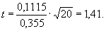 Так как значение 1,41 меньше t19 = 2,09, наличие систематической погрешности не подтверждено, необходимо решить, достаточно ли количество проб. Согласно формуле (8) получается