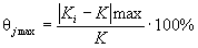 В число составляющих θj включается максимальное отклонение коэффициента преобразования от его среднего значения по диапазону (поддиапазону), вычисляемое в процентах по формуле