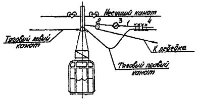 Угол наклона посадочной площадки не должен превышать 6°. 3.9.20. На станциях маятниковой дороги должны быть установлены направляющие, ограничивающие раскачивание вагонов при входе и выходе пассажиров. Зазор между направляющими и вагоном не должен превышать 5 см на сторону в месте нормальной остановки и расширяться в сторону выхода вагона с учетом возможного отклонения его на 11°30 при входе на станцию. Направляющие должны быть установлены так, чтобы нижняя часть вагона не поднималась выше уровня направляющих. 3.9.21. На одной из станций маятниковой дороги (предпочтительно на приводной) должны быть предусмотрены площадки для осмотра и ремонта тележек вагона, а также средство для подъема вагонов. 3.9.22. На пульте управления маятниковой дороги должны быть установлены указатель скорости и указатель положения вагонов. Указатель положения вагонов должен иметь корректирующее устройство, обеспечивающее показания фактического положения вагонов. В случае применения цепных передач для приведения в действие указателя положения вагонов и указателя скорости должны предусматриваться натяжные устройства, исключающие ослабление цепи и блокировки, обеспечивающие остановку дороги в случаях обрыва или спадания цепи. 3.9.23. На открытых частях станций или опорах, подверженных наибольшему воздействию ветра, должны быть установлены анеморумбометры или анемометры, подающие сигнал о скорости ветра на пульт управления. При повышении скорости ветра до предельной должен подаваться звуковой сигнал. 3.9.24. Для остановки вагонов на каждой станции маятниковой дороги должны быть предусмотрены рабочий и аварийный выключатели на случай переподъема. 3.9.25. На посадочных площадках, а также на пульте управления должны быть установлены выключатели для аварийной остановки дороги. 3.9.26. Все вращающиеся части оборудования ППКД, а также канаты, находящиеся на высоте менее 2,5 м, должны быть ограждены. 3.10. Спасательные средства3.10.1. В проекте ППКД должны быть разработаны способы эвакуации пассажиров в случае нарушения работы дороги с учетом места ее сооружения, назначения и климатических условий. 3.10.2. Вагоны маятниковых дорог должны быть снабжены спасательными средствами (лебедкой с канатом и спасательным мешком или поясом), позволяющими безопасную эвакуацию пассажиров. На маятниковых дорогах, кроме спасательных средств в вагоне с учетом условий эксплуатации и рельефа местности, должны дополнительно предусматриваться спасательные средства, расположенные вне вагона (спасательный вагон с независимым приводом, лебедки с резервным тяговым канатом, расположенные около опор и т.п. ). 3.10.3. На кольцевых дорогах для доставки пассажиров на землю допускается снижение несуще-тягового каната с закрепленными на нем креслами с помощью лебедки. 3.11. Сигнализация и связь3.11.1. Между станциями канатной дороги должна быть предусмотрена телефонная, громкоговорящая или радиосвязь. На всех линейных опорах ППКД должны быть розетки для подключения телефонного аппарата к телефонной линии, связывающей станции. 3.11.2. При сопровождении вагона проводником вагон должен быть оборудован телефонной и радиосвязью с конечными станциями, а также устройством для остановки привода. 3.12. Электрическая часть3.12.1. Электрооборудование и электроосвещение сооружений ППКД должны проектироваться и м