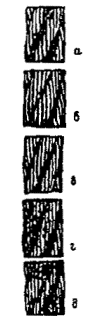 Примечания. 1. n - число несущих проволок в наружных прядях каната; d - диаметр каната, мм. 2. Проволоки заполнения не считаются несущими, поэтому не подлежат учету. В канатах с несколькими слоями прядей учитываются проволоки только видимого наружного слоя. В канатах со стальным сердечником последний рассматривается как внутренняя прядь и не учитывается. 3. Число обрывов не следует путать с количеством оборванных концов проволок, которых может быть в 2 раза больше. 4. Для канатов конструкции с диаметром наружных проволок во внешних прядях, превышающим диаметр проволок нижележащих слоев, класс конструкции понижен и отмечен звездочкой. 5. При работе каната полностью или частично с блоками из синтетического материала или из металла с синтетической футеровкой отмечается появление значительного числа обрывов проволок внутри каната до появления видимых признаков обрывов проволок или интенсивного износа на наружной поверхности каната. Такие канаты отбраковываются с учетом потери внутреннего сечения. 6. Незаполненные строки в графе «Конструкции канатов по ИСО и государственным стандартам» означают отсутствие конструкций канатов с соответствующим числом проволок. При появлении таких конструкций канатов, а также для канатов с общим числом проволок более 300 число обрывов проволок, при которых канат бракуется, определяется по формулам, приведенным в нижней строке таблицы, причем полученное значение округляется до целого в большую сторону. 7. Канаты грузоподъемных машин, предназначенных для подъема людей, а также транспортирующих расплавленный или раскаленный металл, огнеопасные и ядовитые вещества, бракуют при вдвое меньшем числе обрывов проволок. 3. При уменьшении диаметра каната в результате поверхностного износа (рис. 4) или коррозии (рис. 5) на 7 % и более по сравнению с номинальным диаметром канат подлежит браковке даже при отсутствии видимых обрывов проволок. Рис. 4. Износ наружных проволок каната крестовой свивки: а - небольшие лыски на проволоках; б - увеличенная длина лысок на отдельных проволоках; в - удлинение лысок в отдельных проволоках при заметном уменьшении диаметра проволок; г - лыски на всех проволоках, уменьшение диаметра каната; д - интенсивный износ всех наружных проволок каната (уменьшение диаметра проволок на 40 %) Рис. 5. Поверхностная коррозия проволок каната крестовой свивки: а - начальное окисление поверхности; б - общее окисление поверхности; в - заметное окисление; г - сильное окисление; д - интенсивная коррозия При уменьшении диаметра каната в результате повреждения сердечника - внутреннего износа, обмятия, разрыва и т.п. (на 3 % от номинального диаметра у некрутящихся канатов и на 10 % у остальных канатов) канат подлежит браковке даже при отсутствии видимых обрывов проволок (рис. 6). Рис. 6. Местное уменьшение диаметра каната на месте разрушения органического сердечника При наличии у каната поверхностного износа или коррозии проволок число обрывов как признак браковки должно быть уменьшено в соответствии с данными табл. 2. При уменьшении первоначального диаметра наружных проволок в результате износа (см. рис. 4, д) или коррозии (см. рис. 5, д) на 40 % и более канат бракуется. Таблица 2 Нормы браковки каната в зависимости от поверхностного износа или коррозии