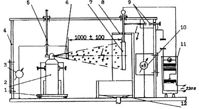 8.4. Определение массы (объема) заряда огнетушащего вещества (5.6) и величины утечки заряда ОТВ и газа из баллонов (5.7) проводят измерением объема, взвешиванием или прямым измерением избыточного давления при температуре (20 ± 2) °С. Утечку проверяют взвешиванием для: а) всех типов баллончиков с газом; б) углекислотных огнетушителей; в) закачных огнетушителей различного типа включая некоторые хладоновые, в которых потеря на 1 % от общей массы заряженного огнетушителя соответствует потере давления не более чем на 10 % от рабочего давления при (20 ± 2) °С. Утечка в закачных огнетушителях, не подпадающих под пп. б) и в), должна проверяться прямым измерением давления при (20 ± 2) °С при помощи штатного манометра. Погрешность измерения не должна превышать ±5 %. 8.5. Определение длины струи ОТВ (5.8) проводят в специальном помещении при температуре (20 ± 5) °С. Помещение оборудуют освещением, разметкой стен и пола, обеспечивающими возможность визуального наблюдения за процессом истечения ОТВ из огнетушителя. Допускается проводить испытания огнетушителей на открытом воздухе при условии, что скорость ветра не превышает 2 м/с, отсутствуют осадки, а температура воздуха составляет (10 ± 20) °С. Перед проведением испытаний огнетушитель выдерживают не менее 18 ч при температуре (20 ± 2) °С. Длину струи ОТВ определяют путем визуального наблюдения или по результату тушения модельных очагов пожара класса В. 8.5.1. Визуально длину струи определяют как расстояние по горизонтали от среза насадка огнетушителя до дальней границы распространения основной массы ОТВ (для газовых огнетушителей и для водных огнетушителей с мелкодисперсной струей) или до дальней границы участка оседания наибольшей массы заряда (для остальных типов огнетушителей). Огнетушитель устанавливают в рабочее положение, насадок располагают в горизонтальной плоскости на высоте (1 + 0,1) м от поверхности пола или земли, и производят его полную разрядку. Во время работы огнетушителя фиксируют длину струи и отмечают особенности ее выхода из насадка огнетушителя. Длину струи определяют при помощи измерительной рулетки, ГОСТ 7502 (предел измерения 0...10 м, цена деления 1 мм). Рекомендуется при определении длины струи ОТВ производить фото- или видеосъемку. Если визуальное определение длины струи ОТВ затруднено, то следует воспользоваться дополнительными средствами, которые устанавливают вдоль проекции ее оси симметрии, такими, как набор емкостей для сбора порошка, конденсационные плиты и др. 8.5.2. В тех случаях, когда перечисленные методы не позволяют определить длину струи ОТВ, допускается определять ее путем тушения модельных очагов пожара класса В. Модельные очаги представляют собой круглые стальные противни диаметром (100 ± 10) мм с высотой борта (50 ± 5) мм и толщиной стенки до 1,5 мм, в которые сначала заливают 100 мл воды, а затем 100 мл бензина марки А-76 (ГОСТ 2084). Противни располагают на земле вдоль оси струи ОТВ. Первый противень (ближний к огнетушителю) устанавливают на расстоянии нормируемой минимальной длины струи ОТВ для данного огнетушителя (5.8), а остальные - на расстоянии 0,5 м друг от друга. Противни должны быть зафиксированы от возможного перемещения под воздействием струи ОТВ. Насадок огнетушителя располагают на высоте (1 ± 0,1) м от поверхности земли таким образом, чтобы обеспечить наиболее эффективное тушение к