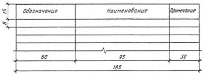 1) в графе 1 - обозначение документа (основного комплекта рабочих чертежей, чертежа изделия, текстового документа и др.);