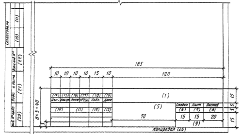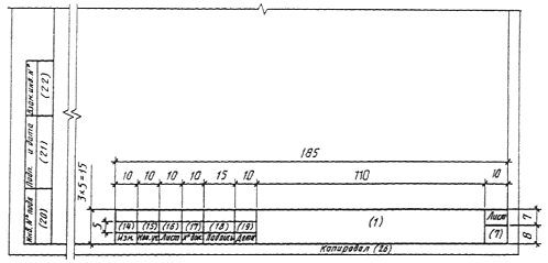 В графах основной надписи и дополнительных графах к ней (номера граф на формах показаны в скобках) указывают: