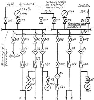 - пневматические командные линии связи и линии пневмопитания;