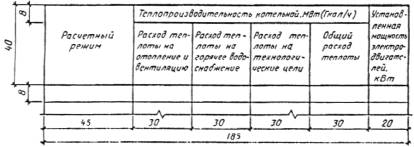 4 ОБЩИЕ ДАННЫЕ ПО РАБОЧИМ ЧЕРТЕЖАМ4.1 В состав общих данных по рабочим чертежам марки ТМ в дополнение к данным, предусмотренным ГОСТ 21.101, включают: - основные показатели по рабочим чертежам марки ТМ - в таблице по форме 1. Допускается, при необходимости, предусматривать в таблице дополнительные графы; - ведомость техномонтажную - по форме 1 ГОСТ 21.405. Ведомость спецификаций, предусмотренную ГОСТ 21.101, в составе общих данных по рабочим чертежам марки ТМ не выполняют. 4.2 В общих указаниях, которые входят в состав общих данных по рабочим чертежам марки ТМ, в дополнение к сведениям, предусмотренным ГОСТ 21.101, приводят: - характеристики установок (блоков); - расчетные параметры наружною воздуха; - данные о транспортируемой среде (наименование, расход, параметры); - вид топлива; - требования к изготовлению, монтажу, испытанию, антикоррозионной защите и тепловой изоляции трубопроводов, воздуховодов и газоходов; - особые требования к установкам (взрывобезопасность, кислотостойкость и др.). 5 ЧЕРТЕЖИ РАСПОЛОЖЕНИЯ ОБОРУДОВАНИЯ5.1 На планах и разрезах чертежей расположения оборудования наносят и указывают: - координационные оси здания (сооружения) и расстояния между ними; - строительные конструкции; - отметки чистых полов этажей и основных площадок; - размерные привязки оборудования, установок (блоков) к координационным осям или элементам конструкций здания (сооружения); - позиционные обозначения (марки) оборудования, установок (блоков), воздуховодов (газоходов) на полке линии-выноски. На планах, кроме, того, указывают наименования помещений и категории помещений по взрывопожарной и пожарной опасности (в прямоугольнике размером 5´8 мм), а на разрезах - отметки уровней основных элементов оборудования, установок (блоков). Допускается наименования помещений и категории помещений по взрывопожарной и пожарной опасности приводить в экспликации помещений по форме 2 ГОСТ 21.501. Примеры выполнения плана и разреза чертежей расположения оборудования приведены и приложении А. 5.2 При сложном многоярусном расположении элементов оборудования, установок (блоков), воздуховодов (газоходов) в одном этаже выполняют планы на различных уровнях в пределах этажа. 5.3 На планах, разрезах и их фрагментах оборудование, установки (блоки), воздуховоды (газоходы) изображают упрощенно толстой основной линией. Строительные конструкции на планах, разрезах и их фрагментах изображают тонкой линией. 5.4 В чертежах тепломеханических решений котельных наименования планов, разрезов и их фрагментов выполняют по правилам, предусмотренным ГОСТ 21.101. При наличии двух и более планов на разных уровнях в пределах этажа в наименованиях планов указывают обозначение плоскости горизонтального разреза. ПРИМЕР - План 3-3 При выполнении части плана в наименовании указывают оси, ограничивающие эту часть плана. ПРИМЕР - План на отм. 0,000 между осями 1-8 и А-Д 5.5 Наименования планов и разрезов чертежей расположения оборудования в основной надписи указывают полностью. ПРИМЕР - Расположение оборудования. План на отм. 0,000. Разрез 1-1 6 СХЕМА ТЕПЛОВАЯ6.1 Тепловую схему (далее - схема) выполняют без соблюдения масштаба, действительное пространственное расположение оборудования и трубопроводов учитывают приближенно. 6.2 Оборудование, трубопроводы, арматуру и другие устройства на схеме указывают условными графическим