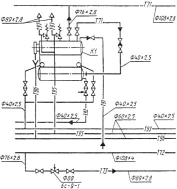 3.5 Обозначение диаметра трубопровода наносят на полке линии-выноски в соответствии с рисунком 1а. В том случае, когда на полке линии-выноски наносят буквенно-цифровое обозначение трубопровода, диаметр трубопровода указывают под полкой линии-выноски в соответствии с рисунком 1б. Обозначение диаметра трубопровода на схемах допускается указывать непосредственно над изображением трубопровода в соответствии с рисунком 1в. 3.6 Тепломеханическое оборудование, установки (блоки), воздуховоды и газоходы обозначают маркой "К" с добавлением порядкового номера в пределах марки. ПРИМЕР - К1; К2; К2.1; К2.2; К2.3 3.7 Рекомендуемые масштабы изображений на чертежах приведены в таблице 2.