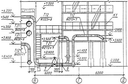 ПРИЛОЖЕНИЕ В(Справочное) Примеры выполнения плана и разреза чертежей расположения трубопроводов