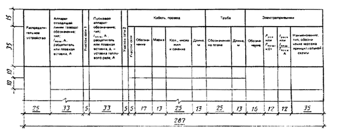 2.13. При заполнении граф «Длина проводов, кабелей и труб» на принципиальных схемах и в кабельнотрубных журналах указывают длину с учетом надбавки на изгибы, повороты и отходы. 2.14. При выполнении рабочих чертежей силового электрооборудования на ЭВМ формы выходных документов должны быть максимально приближены к формам, приведенным в стандарте. Допускается принципиальные схемы питающей и распределительной сетей выполнять в виде таблиц, при этом таблицы должны содержать все технические данные, предусмотренные формами 2 и 3. 3. ЧЕРТЕЖИ ЭЛЕКТРОМОНТАЖНЫХ КОНСТРУКЦИЙ