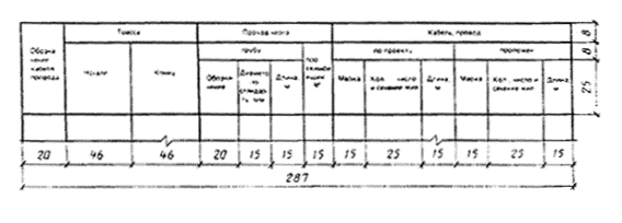При наличии нормализованных элементов труб трубозаготовительную ведомость выполняют по той же форме, но в графе «Участок трассы трубы» указывают: длины нормализованных прямых отрезков труб, а в необходимых случаях - длину добавочного отрезка в метрах; типы соединительных углов с указанием угла изгиба в градусах; обозначения протяжных ящиков и трубных блоков; ссылку на чертеж, в котором дано продолжение трубы. При составлении трубозаготовительной ведомости графы кабельнотрубного журнала, относящиеся к трубам, не заполняют, а дают ссылку на трубозаготовительную ведомость. В трубозаготовительной ведомости приводят таблицу потребности труб по форме 5. 2.12. Ведомость заполнения труб кабелями и проводами выполняют по форме 9 в случаях, когда составляются отдельно кабельный журнал и трубозаготовительная ведомость. Ведомость заполнения труб кабелями, проводами