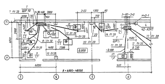 Примеры выполнения принципиальных схем питающей и распределительной сетей приведены на черт. 2 и 3. 2.6. Для троллейных линий, имеющих секционирование и подпитку, допускается выполнять принципиальную схему по произвольной форме. 2.7. Принципиальные схемы управления электроприводами выполняют в соответствии с ГОСТ 2.702-75. Каждый элемент или устройство, изображенные на электрической схеме, должны иметь буквенно-цифровое обозначение, присвоенное им в соответствии с требованиями ГОСТ 2.710-81. Допускается не выполнять принципиальные схемы управления для несложных электроприводов, в которых используют стандартные серийные пусковые устройства без каких-либо изменений внутренней схемы и не имеющие внешних контрольных цепей (например, магнитный пускатель со встроенной кнопкой, шкаф управления). 2.8. Схемы (таблицы) подключения выполняют в соответствии с ГОСТ 2.702-75 для электроприводов, имеющих разветвленные цепи управления и блокировки с другими механизмами и устройствами, сложную пускорегулирующую аппаратуру. Схемы (таблицы) подключения допускается не выполнять: для электроприводов механизмов, схемы управления которыми не разрабатывались, в соответствии с п. 2.7; для электрооборудования и аппаратов, к которым неправильное подключение проводов исключается (например, асинхронные двигатели с короткозамкнутым ротором). 2.9. Планы расположения электрооборудования и прокладки электрических сетей (далее - планы расположения). 2.9.1. Планы расположения выполняют на здание или часть здания с учетом технологических узлов и очередей строительства. Масштабы чертежей принимают по ГОСТ 2.302-68 с учетом обеспечения четкого графического изображения электрооборудования и электрических сетей. 2.9.2. На планах расположения в дополнение к требованиям ГОСТ 21.101-79 показывают: строительные и технологические конструкции, трубопроводы и другие коммуникации, определяющие трассы прокладки электрических сетей или используемые для их крепления и прокладки в виде контурных очертаний - сплошными тонкими линиями по ГОСТ 2.303-68; границы и классы взрыво- и пожароопасных зон, категории и группы взрывоопасных смесей по классификации Правил устройства электроустановок; наименования отделений, участков цехов, помещений и т.п., если это определяет характер прокладки электрических сетей; наименования или обозначения электромашинных помещений, помещений щитов управления, кабельных тоннелей и других электротехнических сооружений; электрооборудование и электрические сети в виде условных графических изображений с указанием буквенно-цифровых обозначений по принципиальным схемам, кабельным или кабельнотрубным журналам. 2.9.3. Электрооборудование и электрические сети на планах расположения приводят в следующем составе: электроприемники, трансформаторные подстанции, комплектные электротехнические устройства, аппараты и т. п.; шинопроводы (магистральные, распределительные, троллейные); троллейные линии и участки электрической сети, выполненные шинами на изоляторах; трассы открытой прокладки кабелей и проводов на конструкциях, в коробках, на лотках, в трубах, каналах, тоннелях; кабельные конструкции, если чертежи их установки не совмещены с планами прокладки проводов и кабелей; трубы скрытой прокладки проводов и кабелей в полах, в земле и фундаментах; магистрали заз