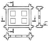 3.2.2. Горизонтальная плоскость сечения колонн, опор и пилонов располагается на высоте 1 м над полом. Если база колонны выполнена по специальной конструкции, то горизонтальная плоскость сечения располагается в нижней части колонны над базой. Особенности конструкции капителя колонны (например, вуты) изображаются тонкой штриховой линией. 3.2.3. В случае переменного сечения колонн горизонтальная плоскость сечения выполняется в нижней части опоры. 4. ИЗОБРАЖЕНИЯ В МАСШТАБЕ 1:25 и больше4.1. Изображения стен, опор, колонн и пилонов в плане, сечении и виде выполняются с учетом основных правил изображения в соответствии с СТ СЭВ 362-76 и СТ СЭВ 363-76. 4.2. Изображение, упрощенное по определениям разд. 3, допускается в том случае, если обеспечивается однозначность изображения.