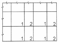 5. Швы между элементами каменных конструкций изображаются, как правило, одной линией (черт. 1); при необходимости, в масштабах от 1:1 до 1:10 - двумя линиями (черт. 2). Температурные швы изображаются двумя линиями.