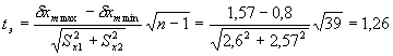 5. Для проверки стабильности характеристики Sx из табл. 2 были выбраны наибольшее и наименьшее значения Sxmax = 2,6 мм и Sxmin = 2,13 мм и вычислена характеристика