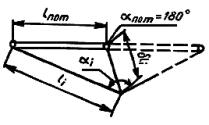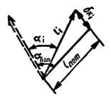 исходном горизонте и проекцией на этот горизонт точки закрепления оси на