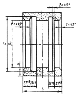 Примечание. Плюсовой допуск на толщину стенки трубы приведен как справочный и не является браковочным признаком. 1.6. Форма асбестоцементных муфт должна соответствовать указанной на черт. 2, а размеры муфт - указанным в табл. 6. Таблица 6 мм