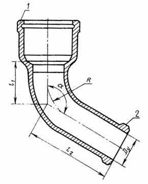 Постановлением Государственного комитета СССР по делам строительства от 4 сентября 1980 г. №137 срок введения установлен с 01.01 1982 г. Несоблюдение стандарта преследуется по закону1. Настоящий стандарт распространяется на отводы к чугунным трубам, предназначенным для систем внутренней канализации зданий. 2. Конструкция и размеры отводов должны соответствовать указанным на чертеже и в табл. 1 и 2.