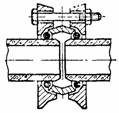 2. ТЕХНИЧЕСКИЕ ТРЕБОВАНИЯ2.1. Втулки и фланцы должны отливаться из чугуна марки не ниже СЧ 12-28 по ГОСТ 1412. 2.2. Отливки деталей не должны иметь дефектов: недолива, неслитин, пригаров, заливов, пористости, трещин, раковин глубиной более 15 % номинальной толщины стенки. Допускается заварка дефектных мест с последующей зачисткой. Общее количество заваренных мест не должно быть более двух на деталь. При неровной поверхности отливки допускается местная зачистка глубиной не более 1 мм только под гайки или головки болтов. На изделиях высшей категории качества дефекты не допускаются. 2.3. Втулки должны быть водонепроницаемы и выдерживать без разрушения давление: 25 ати - при условном проходе до 300 мм; 20 ати - при условном проходе св. 300 мм, а втулки муфт высшей категории качества-30 ати при условном проходе до 300 мм и 25 ати - при условном проходе св. 300 мм. 2.4. Поверхности втулок и фланцев должны быть покрыты нефтяным битумом, температура размягчения которого должна быть не ниже 65°С. Битум должен отвечать требованиям ГОСТ 9812. Покрытие должно быть прочным, гладким и не иметь видимых глазом трещин, не должно быть липким и растворимым в воде. Покрытие поверхности втулок битумом должно производиться после их гидравлического испытания. Примечание. Поверхности втулок и фланцев муфт, предназначенных для систем мелиорации, допускается покрывать битумным лаком БТ 577 по ГОСТ 5631. 2.5. Размеры болтов и гаек должны соответствовать ГОСТ 7798 и ГОСТ 5915, а технические требования к ним - ГОСТ 1759.0. Допускается применение болтов грубой точности с уменьшенной головкой по ГОСТ 15590, а также шпилек соответствующей длины и диаметра резьбы по ГОСТ 22042 с гайками. 2.4. - 2.5. (Измененная редакция, Изм. № 1). 2.6. Болты и гайки должны быть оцинкованы. Примечание. Допускается по согласованию с потребителем поставка неоцинкованных болтов и гаек. 2.7. Готовые детали должны быть приняты техническим контролем предприятия-изготовителя. 3. МЕТОДЫ ИСПЫТАНИЙ3.1. Муфты и соединительные детали должны поставляться комплектно партиями. Размер партии устанавливают соглашением между предприятием-изготовителем и потребителем. 3.2. Приемку муфт и соединительных деталей производят путем проведения приемочного контроля по внешнему виду и размерам, а также по водонепроницаемости. Для проверки по внешнему виду и размерам отбирают 5 % фланцев, втулок и др. деталей, а для испытания гидравлическим давлением - 1 % втулок от партии, но не менее 5 шт. При приемке изделий высшей категории качества для проверки по всем показателям отбирают 10% изделий от партии. Если при контрольной проверке хотя бы одно изделие по какому-либо показателю не будет удовлетворять требованиям настоящего стандарта, производят повторную проверку по этому показателю удвоенного количества изделий, отобранных от той же партии. В случае неудовлетворительных результатов повторной проверки, партию бракуют. (Измененная редакция, Изм. № 1). 3.3. Проверка размеров должна проводиться универсальным инструментом или шаблонами. 3.4. Гидравлические испытания втулок проводят на специальном прессе. При установке на прессе торцы втулок герметизируют резиновыми кольцами. Испытание проводят нагнетанием воды в испытуемую втулку. Величину давления определяют по манометру. Под гидравлическим давлением, указанным в п. 2.3, втулка должна находиться не менее 15 с. При 