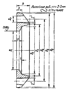 Черт. 2 Фланец ФЧМ для труб Dу, =300- 500 мм