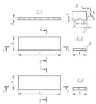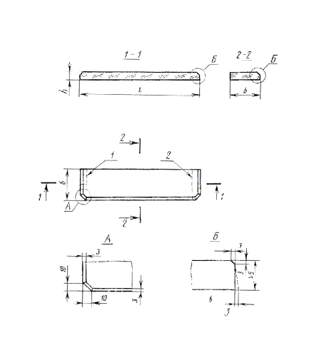 Постановлением Государственного комитета СССР по делам строительства от 8 октября 1980 г. № 157 срок введения установлен с 01.01 1982 г. Поправка, ИУС 12-1982. Настоящий стандарт распространяется на подоконные железобетонные плиты, изготовляемые из тяжелого бетона, бетона на пористых заполнителях и плотного силикатного бетона и предназначенные для применения в жилых, общественных и производственных зданиях, а также во вспомогательных зданиях промышленных и сельскохозяйственных предприятий. 1. ТИПЫ, ОСНОВНЫЕ ПАРАМЕТРЫ И РАЗМЕРЫ1.1. Плиты подразделяют на три типа: ПОШ - из бетона на щебне из мрамора, с шлифованной мозаичной лицевой поверхностью; ПОГ - из бетона на белом или цветном цементе, с глянцевой лицевой поверхностью; ПОО - из бетона на цементном или известковом вяжущем, с гладкой поверхностью, предназначаемой под окраску. Плиты высшей категории качества должны быть типов ПОШ или ПОГ. 1.2. Форма и основные размеры плит для жилых, общественных и вспомогательных зданий должны соответствовать указанным на черт. 1 и приведенным в табл. 1, а для производственных зданий - указанным на черт. 2 и приведенным в табл. 2. ПОДОКОННЫЕ ПЛИТЫ ДЛЯ ЖИЛЫХ, ОБЩЕСТВЕННЫХ И ВСПОМОГАТЕЛЬНЫХ ЗДАНИЙ 1 - вырез; 2 - срез торца; 3 - технологический уклон не более 3 мм Черт. 1 ПОДОКОННЫЕ ПЛИТЫ ДЛЯ ПРОИЗВОДСТВЕННЫХ ЗДАНИЙ 1 - технологический уклон не более 2 мм Черт. 2 Таблица 1