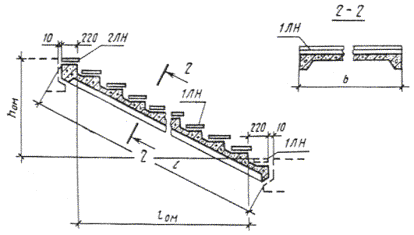 ЛМФ - ребристые с фризовыми ступенями (черт. 2); Марш типа ЛМФ Черт. 2 ЛМП - ребристые с полуплощадками (черт. 3). Марш типа ЛМП с двумя полуплощадками