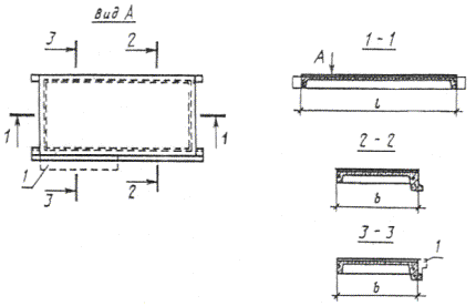 а - этажная или промежуточная площадка; б - конечная площадка; 1 - консоль для опирания площадки на кирпичную стену; 2 - отверстие для мусоропровода ЛПФ - ребристые для маршей типа ЛМФ (черт. 6); Площадка типа ЛПФ 1 - консоль в конечной площадке Черт. 6 ЛПП - ребристые площадки и полуплощадки для маршей типа ЛМП (черт. 7). Площадка типа ЛПП