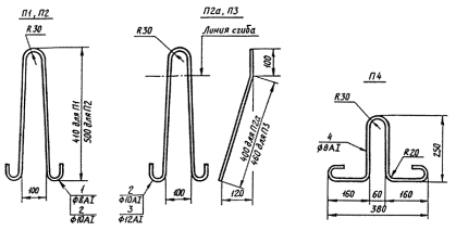 Примечание. Масса блоков, а также марка монтажных петель приведены для блоков из легкого бетона средней плотности 1800 кг/м3.