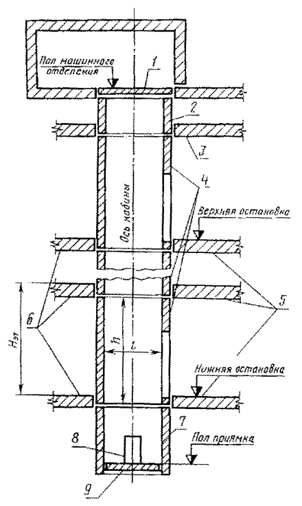 Постановлением Государственного комитета СССР по делам строительства от 20 апреля 1982 г. № 100 срок введения установлен с 01.01.83 Несоблюдение стандарта преследуется по закону Настоящий стандарт распространяется на железобетонные конструкции и изделия (далее - конструкции), изготовляемые из тяжелого бетона или легкого конструкционного бетона и предназначенные для устройства шахт пассажирских лифтов по ГОСТ 5746-83 в жилых зданиях, а также в гостиницах, пансионатах, домах отдыха и других зданиях с высотами этажей 2,8 и 3,0 м. (Измененная редакция, Изм. № 1). 1. ТИПЫ, ОСНОВНЫЕ ПАРАМЕТРЫ И РАЗМЕРЫ1.1. Конструкции шахт лифтов в зависимости от назначения и расположения по высоте шахты (черт. 1) подразделяют на следующие типы: ШЛН - объемные блоки шахт лифтов (далее - блоки) нижние; ШЛС - блоки средние (основные); ШЛВ - блоки верхние; ПЛ - плиты перекрытия над шахтами лифтов (далее - плиты перекрытия); ПП - плиты пола приямка шахт лифтов (далее - плиты приямка); ТЛ - тумбы под буферы кабин лифтов (далее - тумбы). (Измененная редакция, Изм. № 1). Схема шахты лифта 1 - плита перекрытия над шахтой лифта; 2 - верхний блок; 3 - чердачное перекрытие; 4 - средние блоки; 5 - лестничные площадки; 6 - междуэтажные перекрытия; 7 - нижний блок; 8 - тумба под буфер кабины; 9 - плита пола приямка; НЭТ - высота этажа здания Черт. 1 1.2. Конструкции шахт лифтов (за исключением тумб) в зависимости от расположения противовеса по отношению к кабине лифта изготовляют в двух исполнениях: противовес сзади кабины, противовес справа кабины. (Измененная редакция, Изм. № 1). 1.3. Форма и основные размеры конструкций должны соответствовать указанным на черт. 2 - 4, 6 - 8 и в табл. 1. На действующем оборудовании допускается изготовлять до 01.01.91 конструкции размерами, указанными на: черт. 2а, черт. 2б, 6 - 9 и в табл. 1 a - для шахт лифтов грузоподъемностью 320 и 400 кг; черт. 3а, 4а, 6 - 9 и в табл. 1 б - для шахт лифтов грузоподъемностью 500 и 630 кг. Толщина стенок блоков устанавливается рабочими чертежами на эти блоки. Конструкция плит приямка устанавливается рабочими чертежами конкретных зданий с учетом обязательного опирания этих плит на конструкции нулевого цикла. Допускается устройство плит приямка из монолитного железобетона одновременно с возведением конструкций нулевого цикла, а также предусматривать плиту приямка, объединенную с нижним блоком. В зависимости от принятой конструкции приямка высоту нижнего блока шахт лифтов со скоростью движения 1,6 м/с, указанную в табл. 1, табл. 1a, табл. 1б, допускается изменять. Верхние блоки могут быть объединены с плитами, перекрытий над шахтами. (Измененная редакция, Изм. № 1, 2). 1.4. Номинальную толщину стенок блоков принимают кратной 20 мм. ПЛАНЫ ШАХТ ЛИФТОВ ГРУЗОПОДЪЕМНОСТЬЮ 400 И 320 кг ПЛАНЫ ШАХТ ЛИФТОВ ГРУЗОПОДЪЕМНОСТЬЮ 630 И 500 кг Противовес сзади кабины Черт. 3 Черт. 3а Примечание к черт. 2 а, 2 б, и 3 а. Размеры без скобок для блоков по табл. 1, в скобках - по табл. 1 а и табл. 1б. Противовес справа кабины Черт. 4 Черт. 4а Нижний и верхний блоки Черт. 6* Средний блок Черт. 7 Примечание к черт. 7. Размеры без скобок для блоков по табл. 1, в скобках - по табл. 1 а и табл. 1б. * Черт. 5. (Исключен, Изм. № 1). Плита перекрытия Черт. 8 Тумба Черт. 9 Таблица 1