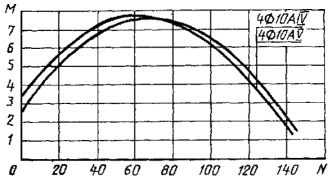 3. При проверке свай по прочности и образованию трещин для свай, армированных проволокой и канатами, и по прочности и раскрытию трещин до ат.кр = 0,2 мм для свай, армированных стержневой арматурой, на внецентренное сжатие от эксплуатационных нагрузок рекомендуется пользоваться графиками.