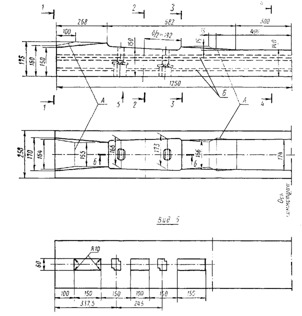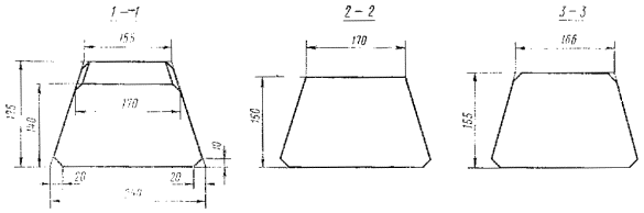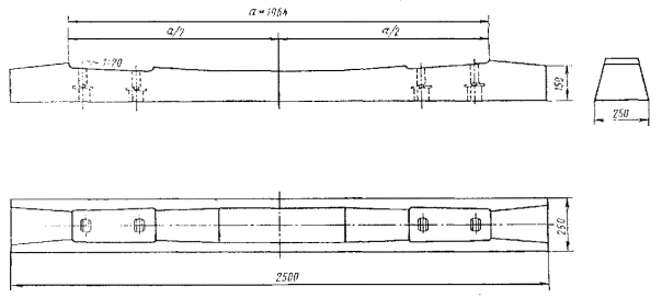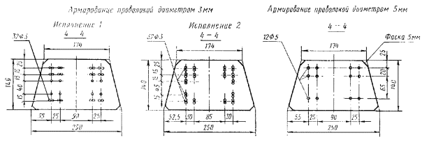 Постановлением Государственного комитета Совета Министров СССР по делам строительства от 29 сентября 1975 г. № 160 срок введения установлен с 01.07.75 Несоблюдение стандарта преследуется по закону Настоящий стандарт распространяется на брусковые железобетонные предварительно напряженные шпалы, применяемые в прямых и кривых участках трамвайных путей широкой колеи бесстыковых и со стыками, с дорожным покрытием и без него. Шпалы предназначены для применения с рельсами типов Тв60, Тв65, Р43, Р50, Р65, Р75 и промежуточными скреплениями типа ЛС-053. Расчетные нагрузки на шпалы и расход материалов приведены в приложениях 1 и 2. 1. ТИП И ОСНОВНЫЕ РАЗМЕРЫ1.1. Шпалы должны изготовляться типа ЛШ-5. Шпалы, армированные проволокой диаметром 3 мм, изготовляются в двух исполнениях - 1 и 2, армированные проволокой диаметром 5 мм - в одном исполнении. 1.2. Форма и основные размеры шпал должны соответствовать указанным на черт. 1-4. Черт. 1