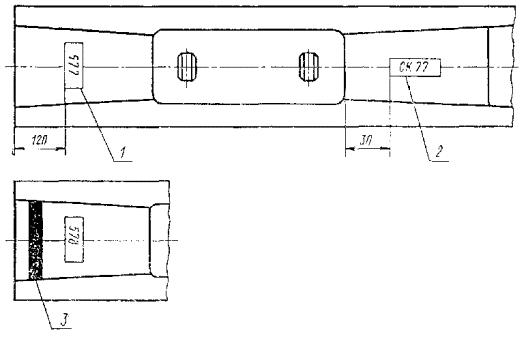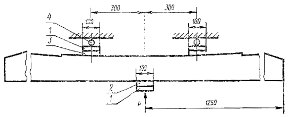 Подрельсовые площадки должны быть плоскими. Непрямолинейность (выпуклость или вогнутость) подрельсовых площадок не должна превышать 1 мм на всей их длине. Местные неровности на поверхности подрельсовых площадок не допускаются. На каждой подрельсовой площадке допускается не более одной раковины и одного окола бетона. Размеры этих раковин или околов не должны превышать указанных в табл. 2 для верхней поверхности шпал. 2.14. Заделка раковин и околов на поверхности шпал, а также заделка пустот вокруг проволок на торцах шпал не допускается. 3. ПРАВИЛА ПРИЕМКИ3.1. Готовые шпалы должны быть приняты техническим контролем предприятия-изготовителя. 3.2. Приемку шпал производят партиями. В состав партии должны входить шпалы, последовательно изготовленные в течение не более одних суток из одних и тех же материалов и по одной и той же технологии. 3.3. Для проверки размеров, формы и внешнего вида шпал от каждой партии до 1000 шпал отбирают образцы в количестве 2%, но не менее 10 шт., а от партии более 1000 шпал - 1%, но не менее 20 шт. 3.4. Партия шпал может быть принята по размерам и внешнему виду, если ни на одном из проверяемых образцов не обнаружено отклонений, превышающих допускаемые. Партию шпал более 1000 шт., в которой хотя бы на одним отобранном образце обнаружены отклонения, превышающие допускаемые, разрешается разделить на мелкие партии по 100 шт. в каждой и предъявлять их для повторной проверки размеров и внешнего вида в соответствии с требованиями настоящего стандарта. В случае неудовлетворительных результатов повторной проверки партию не принимают и производят поштучную приемку шпал всей партии. 3.5. При определении прочности бетона шпал нормы и порядок отбора проб бетона и правила подсчета результатов принимают по ГОСТ 18105-86. Прочность бетона шпал определяют на образцах-кубах, изготовленных из той же, что и шпалы, бетонной смеси и прошедших тепловую обработку в одинаковых условиях со шпалами. Если при проверке окажется, что прочность бетона шпал ниже отпускной, то шпалы могут быть предъявлены к повторной проверке после достижения бетоном отпускной прочности. 3.6. Для испытания шпал на трещиностойкость от каждой партии шпал отбирают образцы в количестве 0,5% партии, но не менее 3 шт. 3.7. Партия шпал считается выдержавшей испытания на трещиностойкость, если все шпалы, отобранные из этой партии в соответствии с п. 3.5, выдержали контрольные нагрузки, указанные в п. 4.11. 3.8. В случае неудовлетворительных результатов испытания на трещиностойкость допускается разделить крупную партию шпал на мелкие партии по 100 шт. в каждой и проводить повторные испытания на трещиностойкость отдельно для каждой из этих мелких партий по той же методике. Если при повторной проверке хотя бы одна шпала не выдержит испытаний на трещиностойкость, то всю партию из 100 шпал считают некондиционной. 3.9. Испытания образцов бетона на морозостойкость производят не реже одного раза в год, а также при изменении состава бетона, вида материалов, технологии приготовления и укладки бетонной смеси и условий твердения бетона. 3.10. Потребитель имеет право производить контрольную проверку качества шпал, применяя для этого правила отбора образцов и методы испытаний, предусмотренные настоящим стандартом. 4. МЕТОДЫ ИСПЫТАНИЙ4.1. Размеры шпал, а также наличие дефектов на их поверхности (раковины, околы 