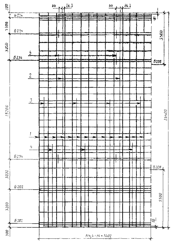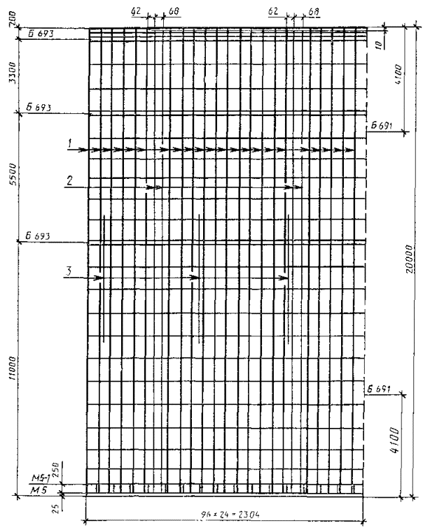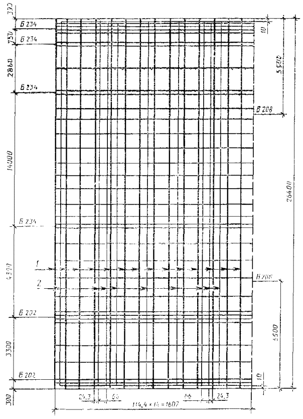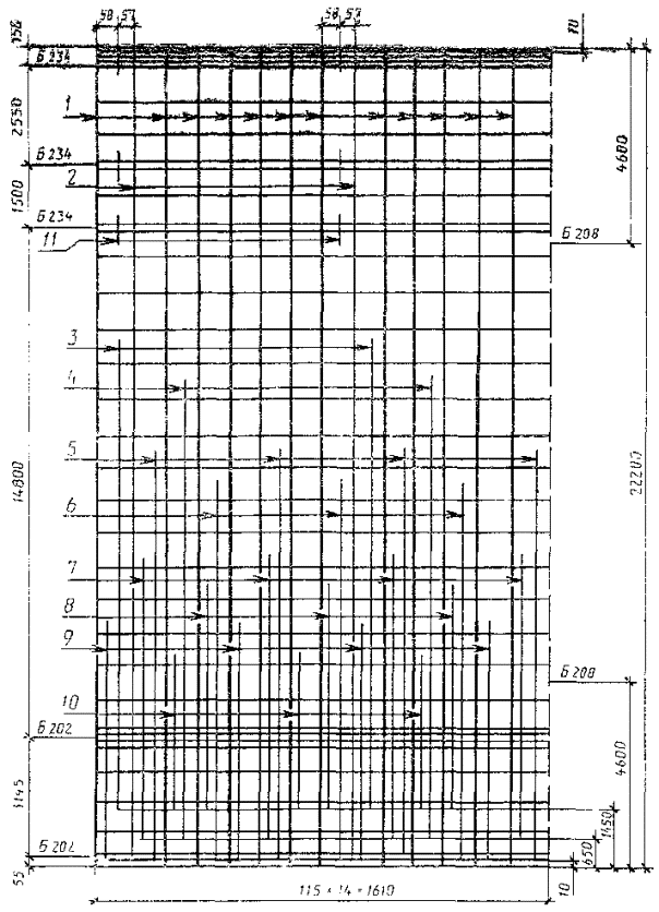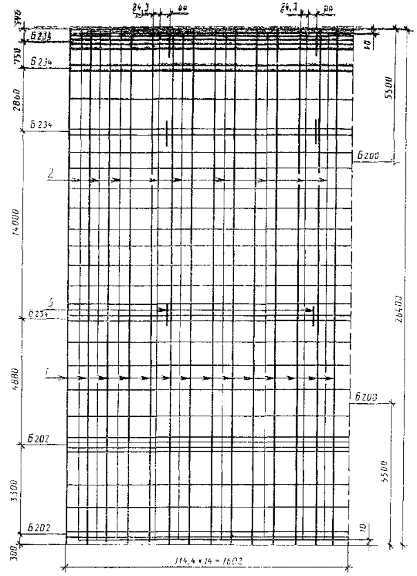 Примечание. На чертежах арматурных каркасов напрягаемая арматура обозначена цифрой 1 и выделена жирными линиями.
