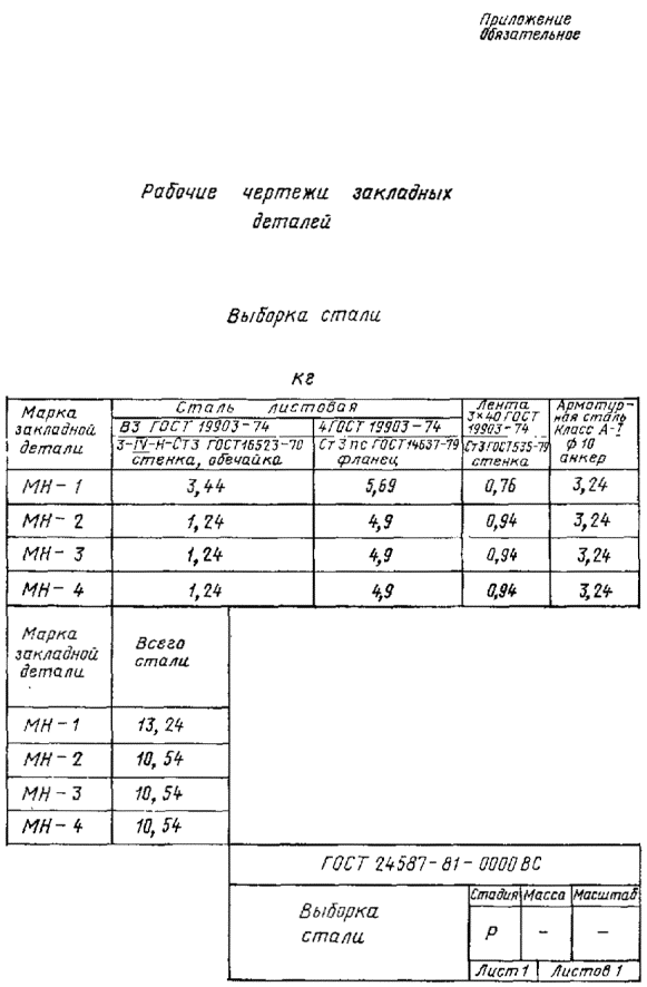 Примечание. Фланец (поз 1) приварить к закладному фланцу (поз. 2) после бетонирования лотка- водовыпуска. 2.6. Закладные детали должны изготавливаться из листовой стали ВСтЗсп по ГОСТ 380-71 и ГОСТ 19903-74 или ГОСТ 19904-74, анкера -из арматурной стали класса А-1 по ГОСТ 5781-75. 2.7. Отклонения по толщине листов, из которых изготавливаются изделия закладных деталей, должны соответствовать предусмотренным ГОСТ 19903-74 или ГОСТ 19904-74. 2.8. Сварку производить электродами Э42. Механические свойства сварных соединений и наплавленного металла при нормальной температуре должны соответствовать предусмотренным в ГОСТ 9467-75. 2.9. Отклонения стальных закладных деталей не должны превышать указанных в чертежах обязательного приложения. 2.10. Открытые поверхности стальных закладных деталей лотков должны иметь лакокрасочное покрытие, которое следует наносить на очищенные от наплывов бетона поверхности. Техническая характеристика лакокрасочных покрытий должна назначаться в соответствии с требованиями главы СНиП II-28-73. 3. ПРАВИЛА ПРИЕМКИ3.1. Приемка лотков-водовыпусков должна производиться в соответствии с требованиями ГОСТ 21509-76. 4. МЕТОДЫ ИСПЫТАНИЙ4.1. Испытание лотков-водовыпусков должно производиться по ГОСТ 21509-76. 4.2. Перед испытанием на водонепроницаемость лотков-водовыпусков отверстие в закладной части закрывается съемной заглушкой. 4.3. Испытание сварных соединений арматурных изделий и закладных деталей и оценку их качества следует производить по ГОСТ 10922-75. 5. МАРКИРОВКА, ТРАНСПОРТИРОВАНИЕ И ХРАНЕНИЕ5.1. Маркировка, транспортирование и хранение лотков-водовыпусков должны производиться в соответствии с ГОСТ 21509-76. 5.2. Закладные детали должны иметь маркировку масляной краской на наружных поверхностях фланцев. Маркировочная надпись должна указывать на принадлежность фланцев к соответствующему лотку, например, для лотка ЛРВ-4 фланец маркируется-4. 6. УКАЗАНИЯ ПО ЭКСПЛУАТАЦИИ6.1. Укладка лотка-водовыпуска на стоечные опоры разрешается при достижении бетоном омоноличивания стойки прочности не ниже 50% от проектной, пуск воды по лоткам -при 100% прочности бетона. 6.2. Для обеспечения водонепроницаемости стыков лотков-водовыпусков с примыкающими лотками рекомендуются применять жгуты круглого сечения из резины или пароизола. Для обеспечения герметичности стыков жгуты из резины или пароизола должны быть обжаты соответственно на 30 и 50%. Жгуты из резины должны соответствовать ГОСТ 6467-79, а из пароизола - ГОСТ 19177-73. 7. ГАРАНТИИ ИЗГОТОВИТЕЛЯ7.1. Завод-изготовитель гарантирует соответствие поставляемых им изделий требованиям настоящего стандарта при соблюдении потребителем правил транспортирования и хранения, установленных настоящим стандартом. 7.2. Некачественные лотки-водовыпуски завод-изготовитель обязан заменить в сроки, согласованные с потребителем.