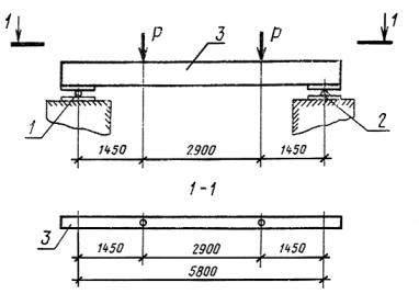 Примечания: 1. Величины контрольных нагрузок указаны без учета массы балки. 2. Величина коэффициента С принимается в зависимости от возможного характера разрушения балки согласно ГОСТ 8829-85. 3. При измерении контрольного прогиба fк в середине пролета балки консолей по схеме черт. 2 прикладывается нагрузка, равная 1/4 P. СОДЕРЖАНИЕ