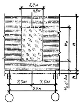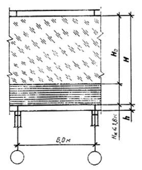 * С промежуточным креплением ленточного остекления к колоннам каркаса через 3,0 м по высоте. ** В скобках даны значения H и H0 при высоте слоя кладки над балкой до проема Hк = 1,8 м. Примечания: 1. Кладка для стен зданий с расчетной сейсмичностью 7-9 баллов должна быть не ниже 2-й категории по СНиП II-7-81 и иметь гибкие связи с каркасом здания. 2. При расчетной сейсмичности 7 и 8 баллов высоты кладки принимаются такими же, как для зданий без учета сейсмичности по табл. 1. а) глухая стена (без проемов)