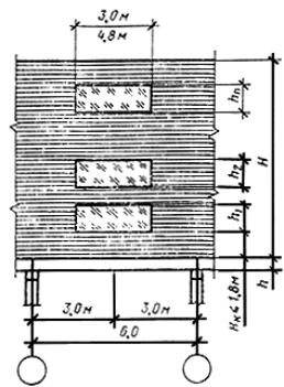 полная высота проемов в пределах высоты слоя кладки Н; h1, h2, …, hn - высоты проемов, расположенных в пределах