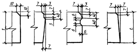 Черт. 1 Варианты профиля продольных граней плиты (сеч. 6 - 6)