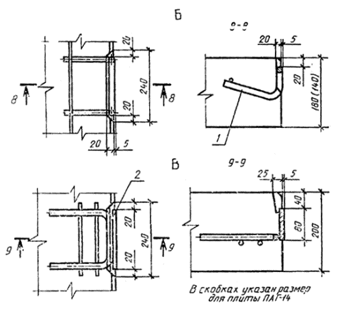 В скобках указан размер для плиты ПАГ-14 1 - монтажно-стыковое изделие М1 или М3; t - толщина плиты Черт. 3